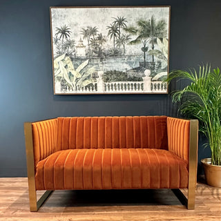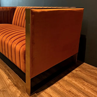 Retro Burnt Orange Velvet with Gold Trim 3 Seater Couch